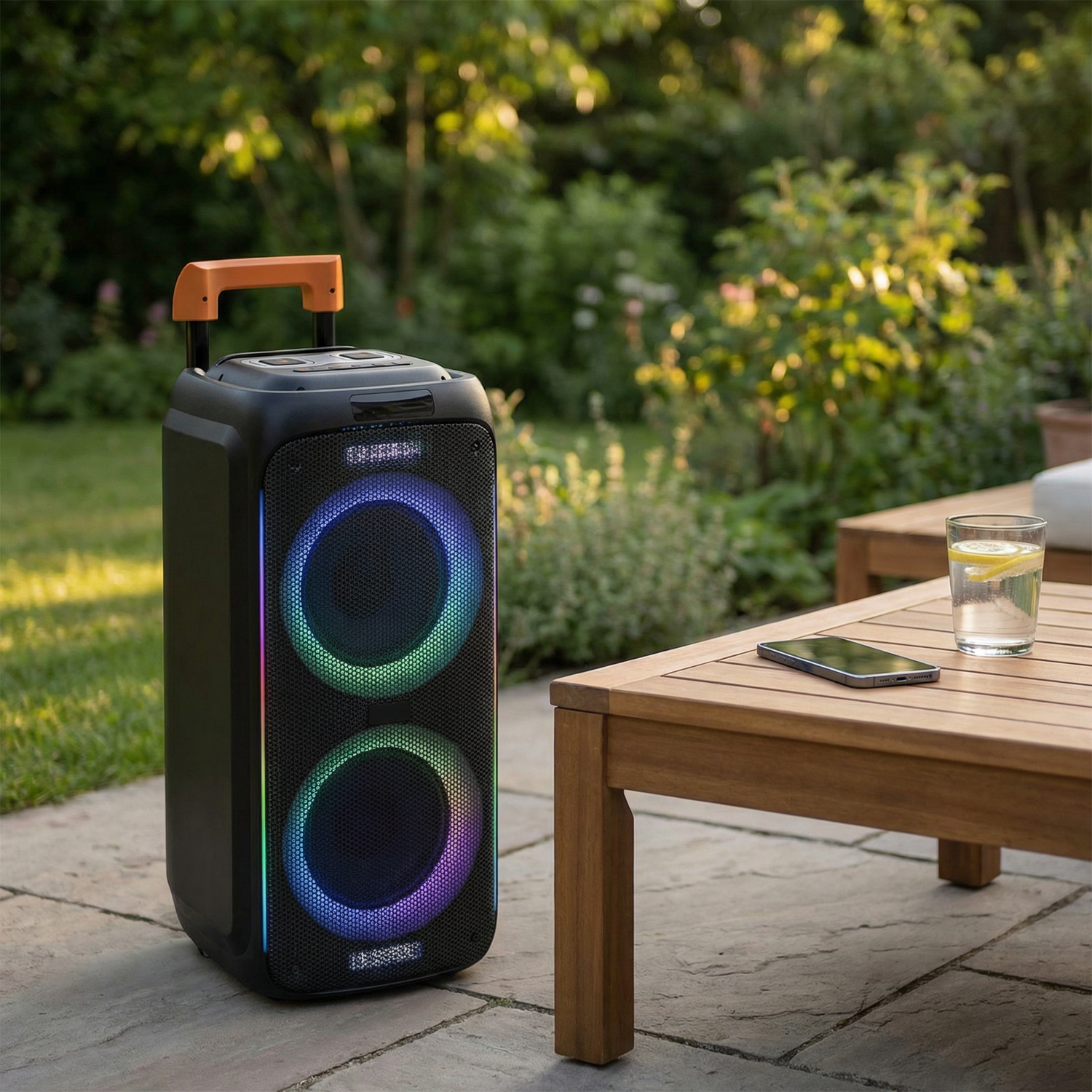 Denver BPS-457 – Leistungsstarker Bluetooth-Party-Lautsprecher mit LED-Lichteffekten, Akku & Mikrofon für Sound, Stimmung und mobile Events, 400W (40 RMS)