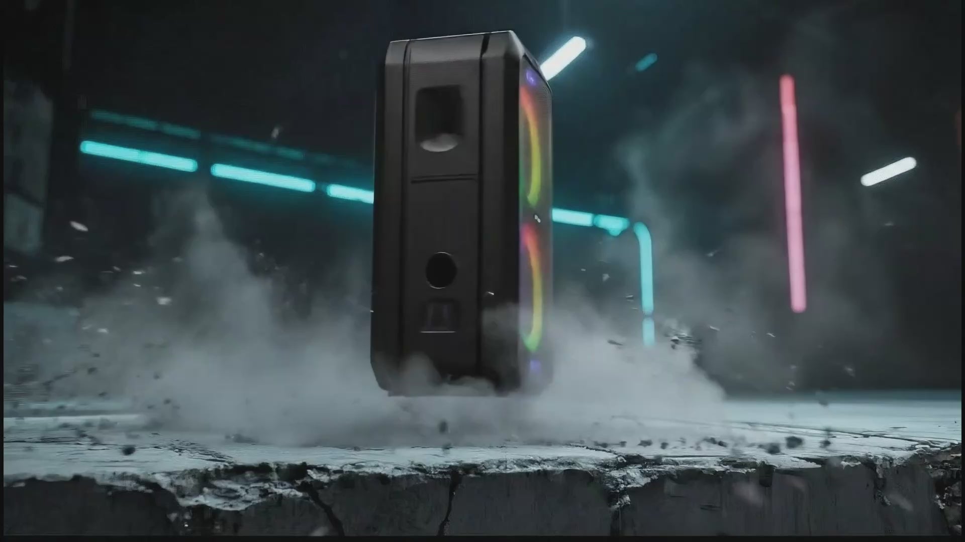 - LED-Lichteffekte: Kreisförmig um die Woofer